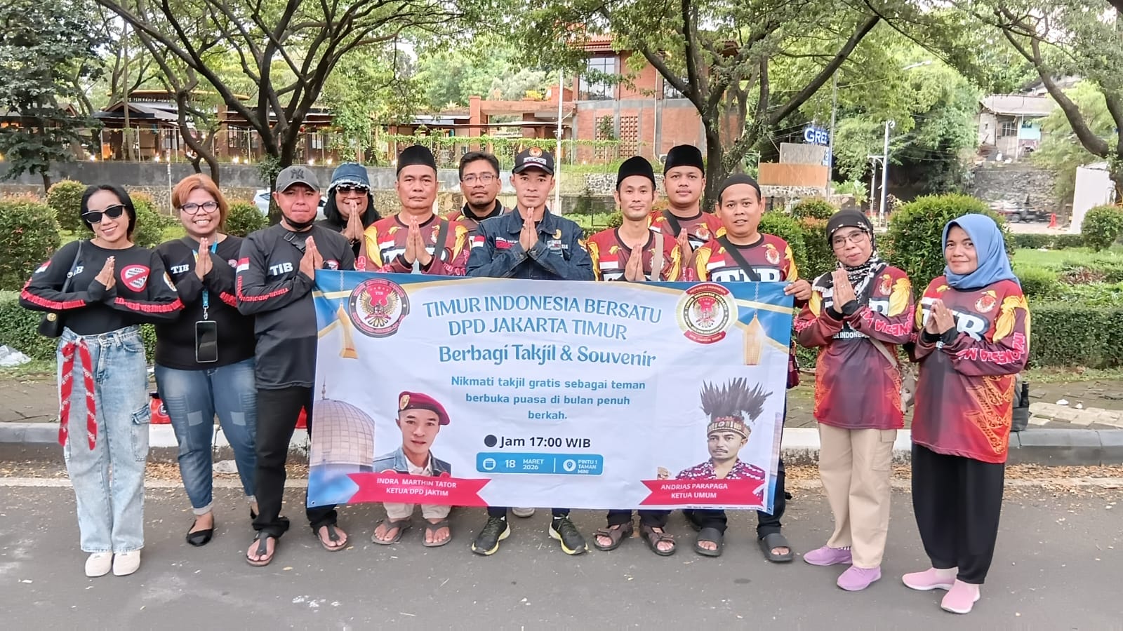 JAKARTA, JACKTVNEWS.COM Organisasi Timur Indonesia Bersatu (TIB) Dewan Pimpinan Daerah (DPD) Jakarta Timur menggelar kegiatan sosial dengan membagikan takjil gratis kepada warga di penghujung bulan Ramadan. Kegiatan ini berlangsung di sekitar Pintu 1 Taman Mini Indonesia Indah (TMII), Jakarta Timur, Rabu (18/3/2025).