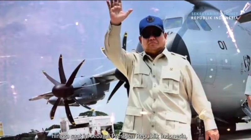 Dalam kesempatan itu, Presiden Prabowo turut menyampaikan ucapan selamat kepada seluruh prajurit TNI AU dari dalam pesawat kepresidenan.