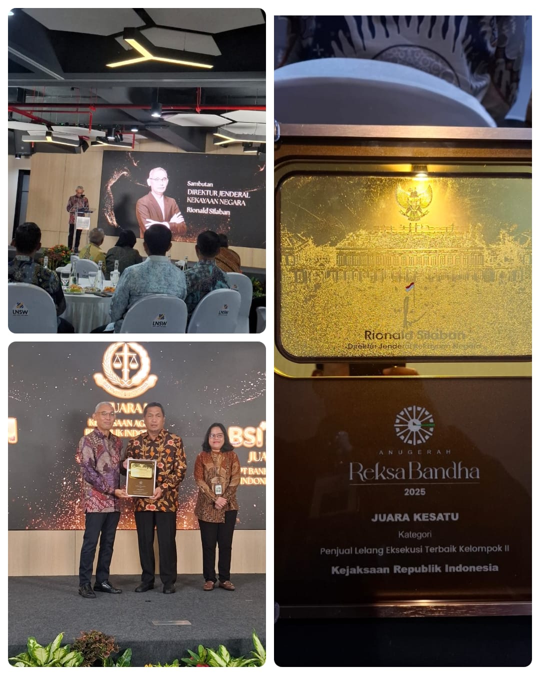 Jakarta, || JACKTVNEWS.COM Kejaksaan Republik Indonesia meraih Juara I Kategori Pemohon Lelang Eksekusi pada Anugerah Reksa Bandha Tahun 2025 yang diselenggarakan oleh Direktorat Jenderal Kekayaan Negara (DJKN) Kementerian Keuangan. Penghargaan tersebut diberikan dalam rangka peringatan Hari Kekayaan Negara ke-19 dan berlangsung di Gedung Syafruddin Prawiranegara II (Gedung DJKN), Kamis (18/12/2025).