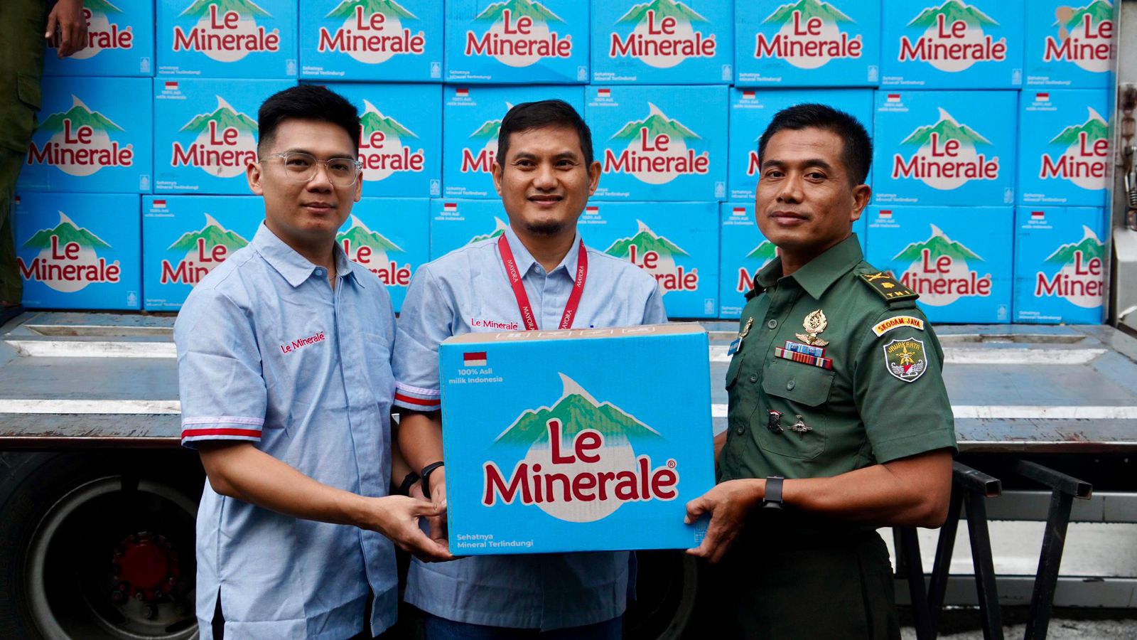Bantuan tersebut berasal dari PT Mayora Tbk, berupa 2.500 karton air mineral Le Minerale dengan total 12.700 botol yang terdiri dari botol ukuran 3 liter dan 5 liter. Selanjutnya bantuan ini akan segera dikirimkan kepada masyarakat yang terdampak bencana.