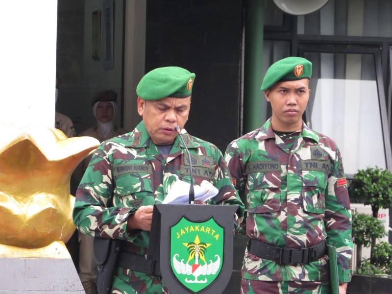Upacara yang diikuti oleh seluruh Prajurit dan PNS Kodim 0505/JT. Bertindak sebagai Inspektur Upacara yakni Danramil 03/Pasar Rebo–Ciracas Mayor Inf Nawawi Affandi.