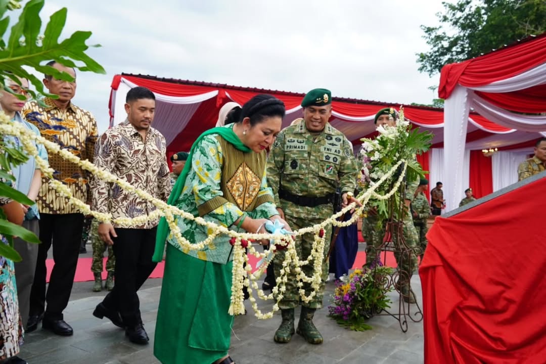 Surakarta – JACKTVNEWS.COM Panglima Divisi Infanteri 2 Kostrad, Mayjen TNI Primadi Saiful Sulun, S.Sos., M.Si., bersama Ibu Siti Hediati Soeharto yang mewakili keluarga besar, meresmikan Monumen Jenderal Besar TNI (Purn) H.M. Soeharto di Brigif 6 Divif 2 Kostrad, Sukoharjo, Surakarta, Selasa (3/3/2026).