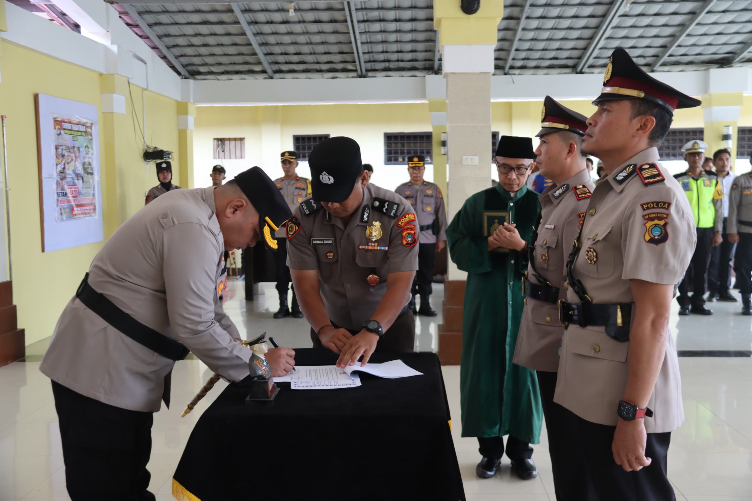 Dalam rangkaian upacara tersebut, dilaksanakan prosesi pelepasan dan penyematan tanda jabatan, pengambilan sumpah jabatan oleh pejabat baru, hingga penandatanganan Berita Acara Sertijab, Pakta Integritas, serta Komitmen Moral sebagai bentuk tanggung jawab dalam menjalankan amanah.