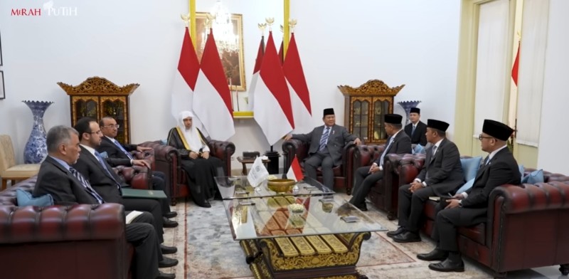 JAKARTA|| JACKTVNEWS.COM Presiden Republik Indonesia Prabowo Subianto menerima Sekretaris Jenderal Liga Muslim Dunia, Syaikh Dr. Muhammad Abdul Karim Al-Issa, dalam pertemuan yang berlangsung di Istana Merdeka, Jakarta, pada Kamis, 4 Desember 2025. Dalam pertemuan tersebut, Presiden Prabowo turut didampingi oleh Ketua MPR RI Ahmad Muzani serta Wakil Menteri Haji dan Umrah Dahnil Anzar Simanjuntak.