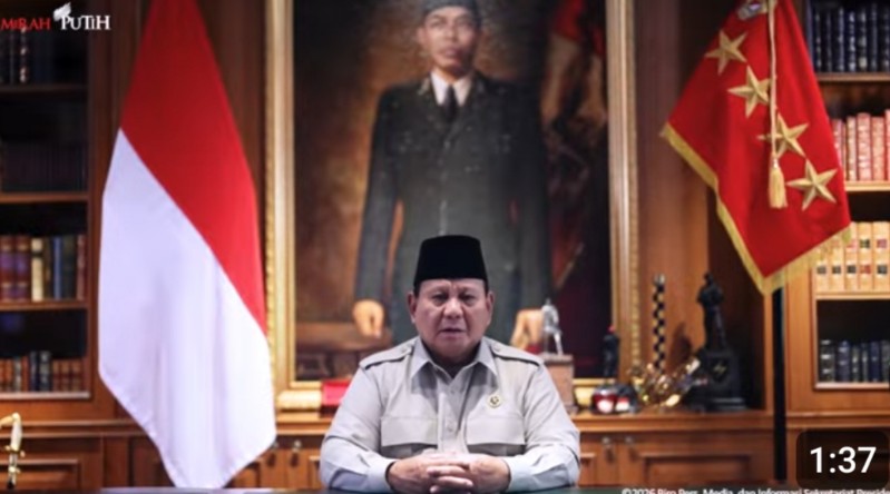 Ucapan tersebut disampaikan Presiden melalui tayangan video yang diunggah di kanal YouTube Sekretariat Presiden, pada Jumat, 20 Maret 2026.