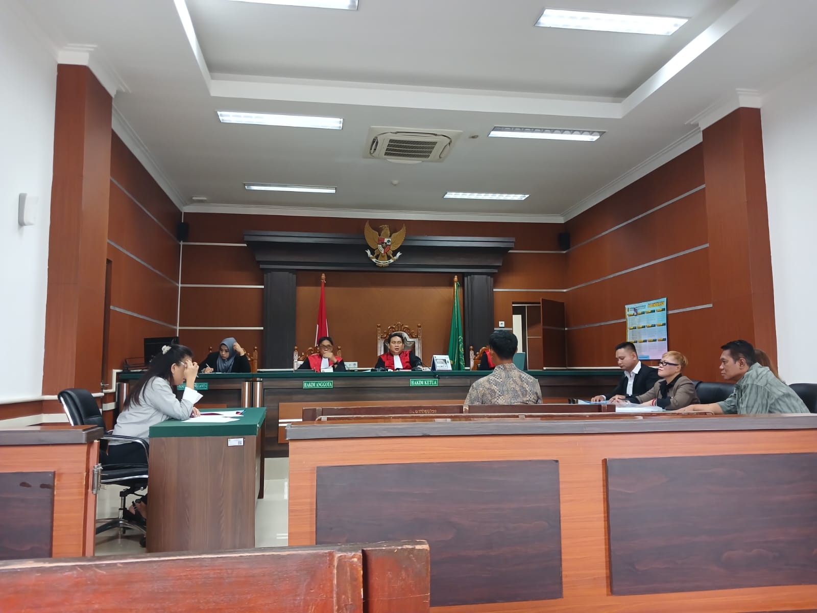 Persidangan dipimpin oleh Ketua Majelis Hakim Philip Pangalila, dengan hakim anggota Iriyanto Tiranda dan Muswandar, serta didampingi panitera Anita Sukarta.