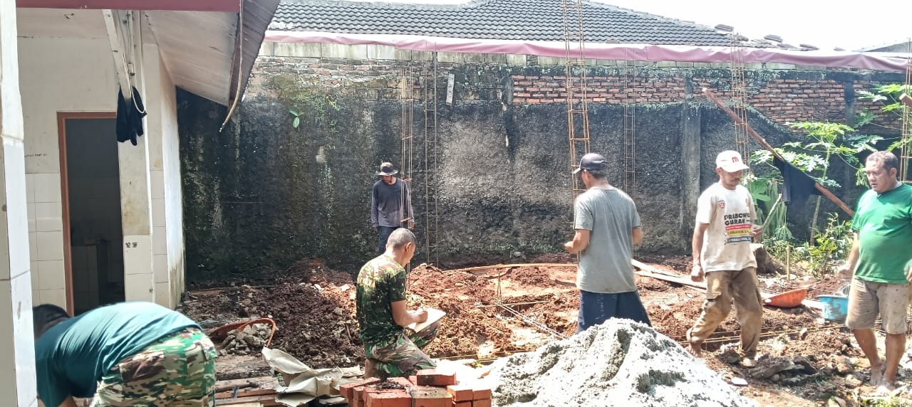 Prajurit Korem 051/Wkt bersama pengurus panti dan warga sekitar terlihat kompak mengerjakan pembangunan MCK baru secara gotong royong.