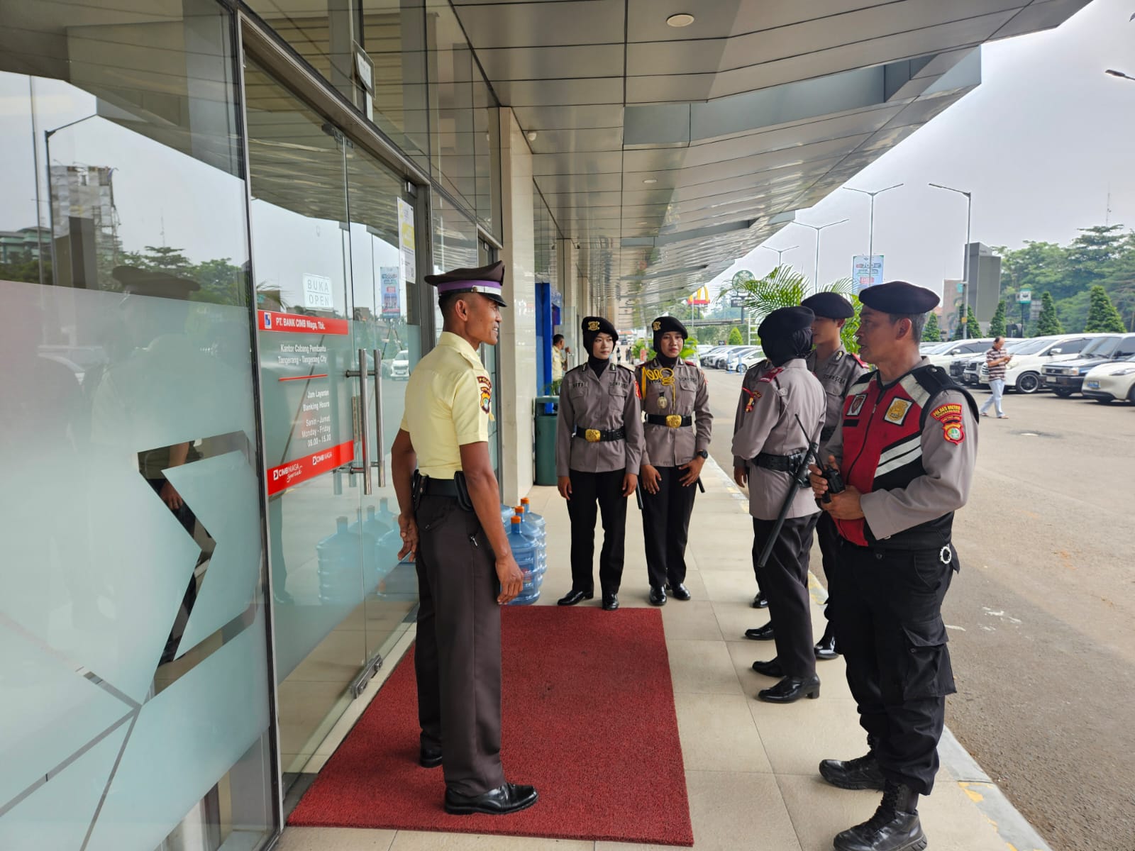 Selasa (02/12/2025) pukul 11.30 WIB, Anggota Samapta/Patroli Polres Metro Tangerang Kota melaksanakan patroli jalan kaki dialogis di kawasan perbankan salah satunya di Ruko Tangcity, Jalan Jend. Sudirman, Kelurahan Babakan, Kota Tangerang.