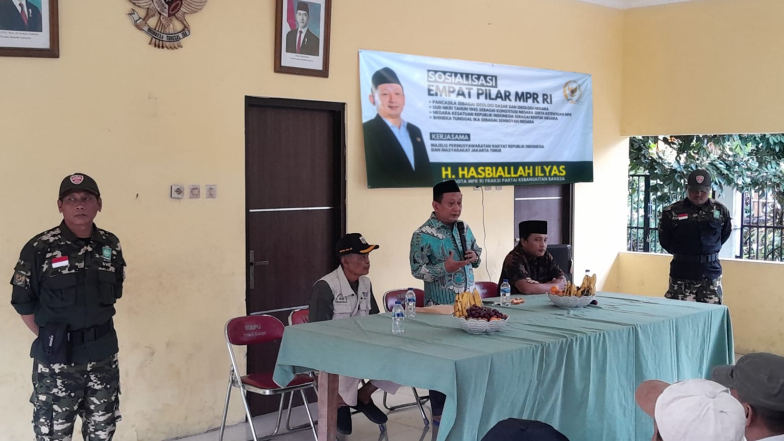 Dalam kegiatan tersebut, Anggota MPR RI Fraksi Partai Kebangkitan Bangsa (PKB), H. Hasbiallah Ilyas, menyampaikan pentingnya peran masyarakat dalam menjaga keutuhan Negara Kesatuan Republik Indonesia (NKRI). Ia menekankan bahwa Pancasila, UUD 1945, NKRI, dan Bhinneka Tunggal Ika merupakan pilar utama yang harus dipahami dan diamalkan dalam kehidupan sehari-hari.